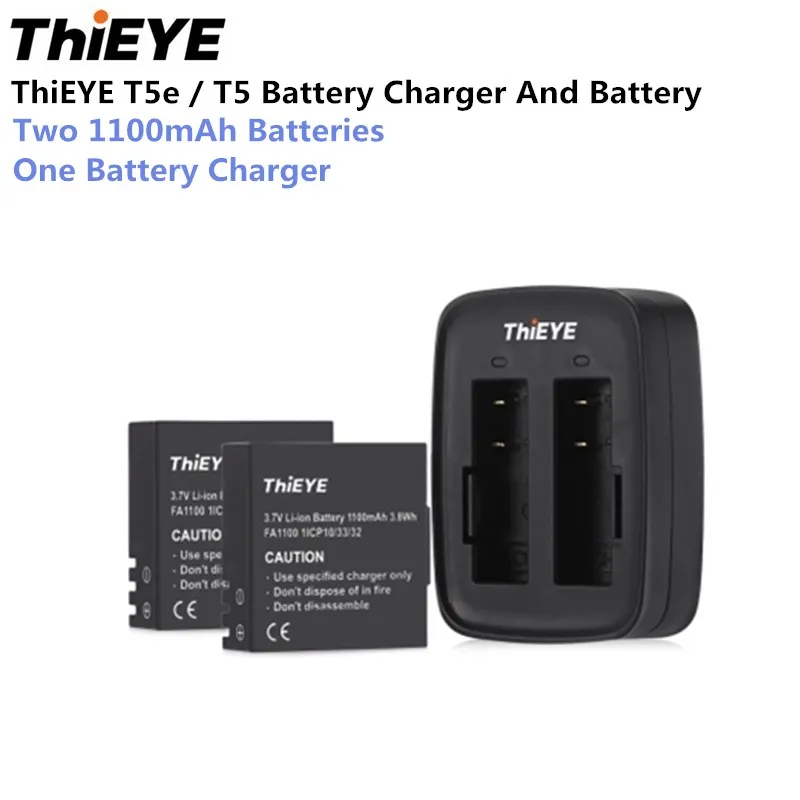 Beste Kopen ThiEYE T5E T5 Action Camera Dual Acculader Met Twee 1100 MAh Batterijen Snel Lading Voor T5e T5 Goedkoop