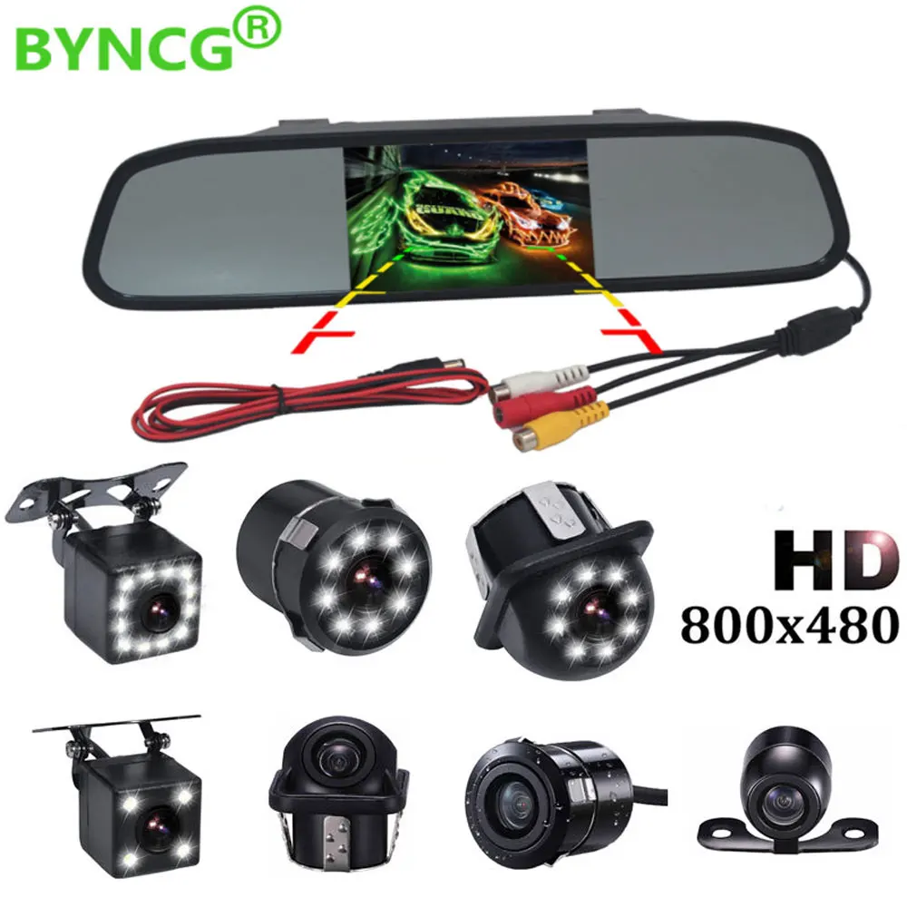 Kopen Goedkoop BYNCG 5 inch Auto Achteruitkijkspiegel Monitor Auto Parking Vedio + LED Night Vision Backup Reverse Camera CCD Auto Achteruitrijcamera view Camera Prijs