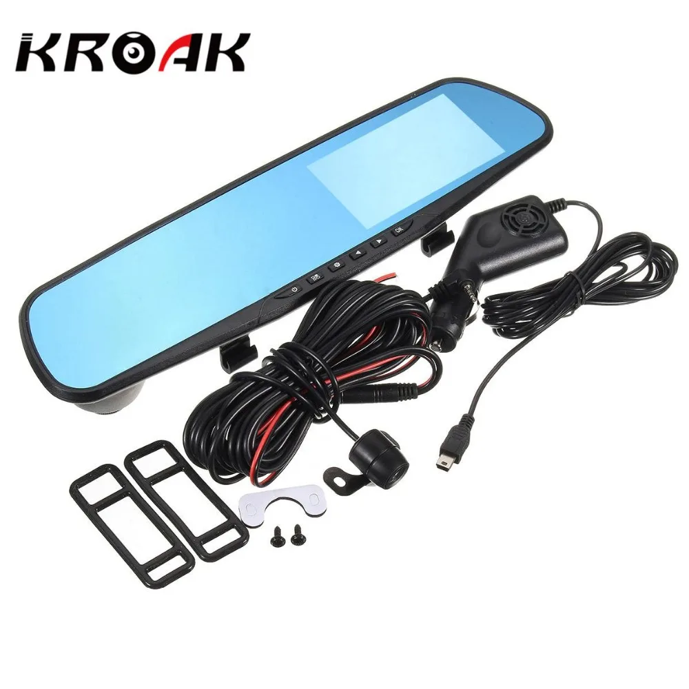 Goede Koop 4 Inch Auto DVR Camera Beoordeling Spiegel FHD 1080 P Video Recorder Nachtzicht Dash Cam Parking Monitor Auto Registrar Dual Lens DVR Goedkoop
