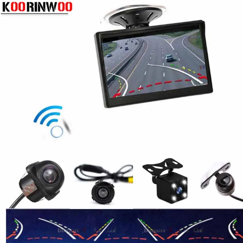 Goede Koop Koorinwoo HD 5 inch Screen Monitor 800*480 Sucker Draadloze Auto Bewegende Dynamische Traject Parking Gids Auto Achteruitkijkspiegel Cam parking Goedkoop